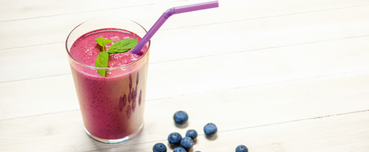 Blenderda kõik koostisosad mõnusaks smuutiks ja serveeri koos mustikate ja mündilehega.