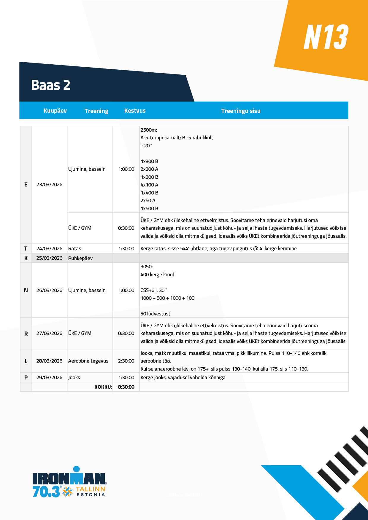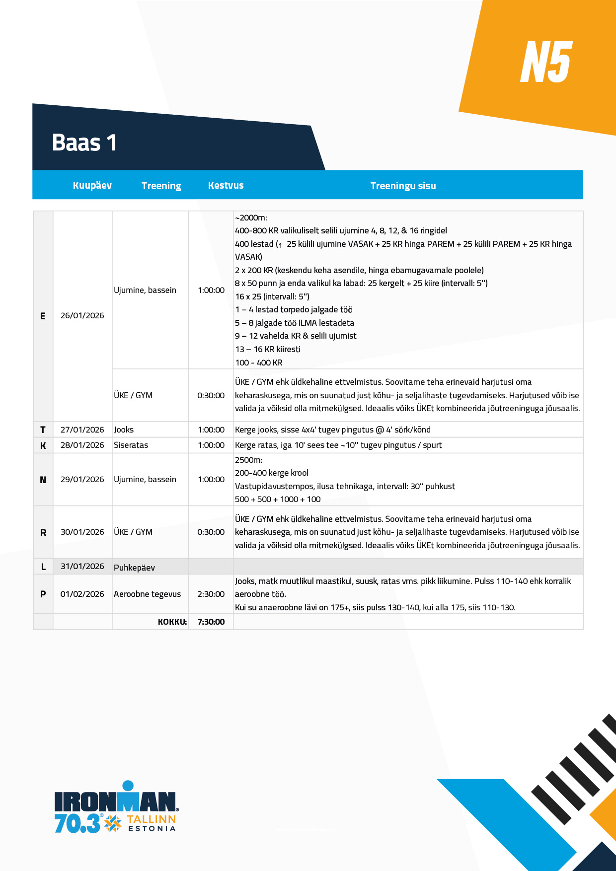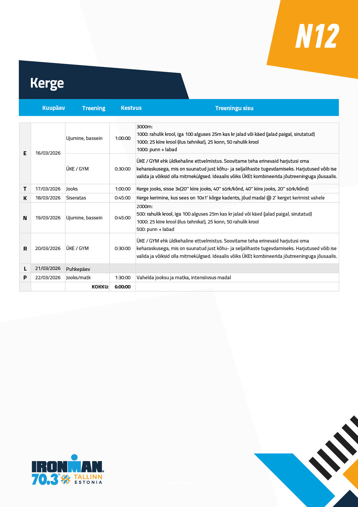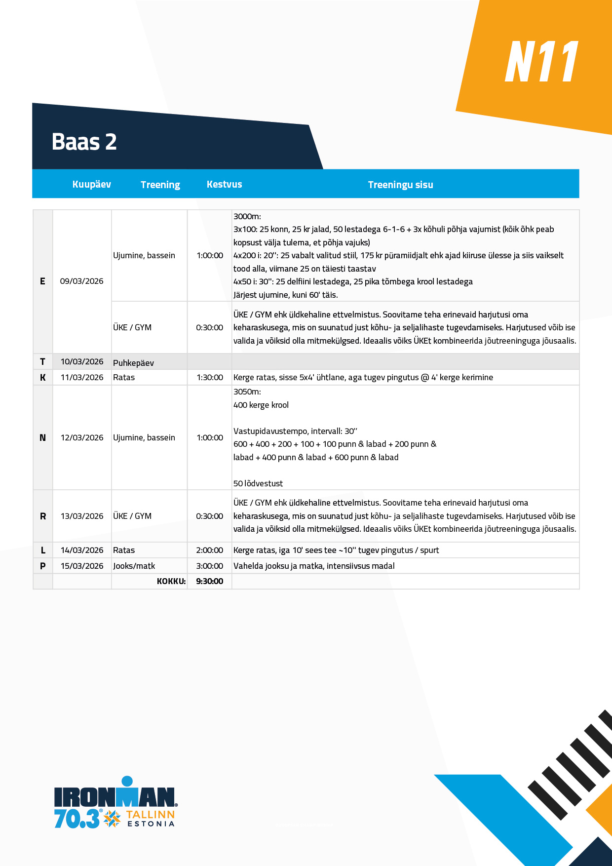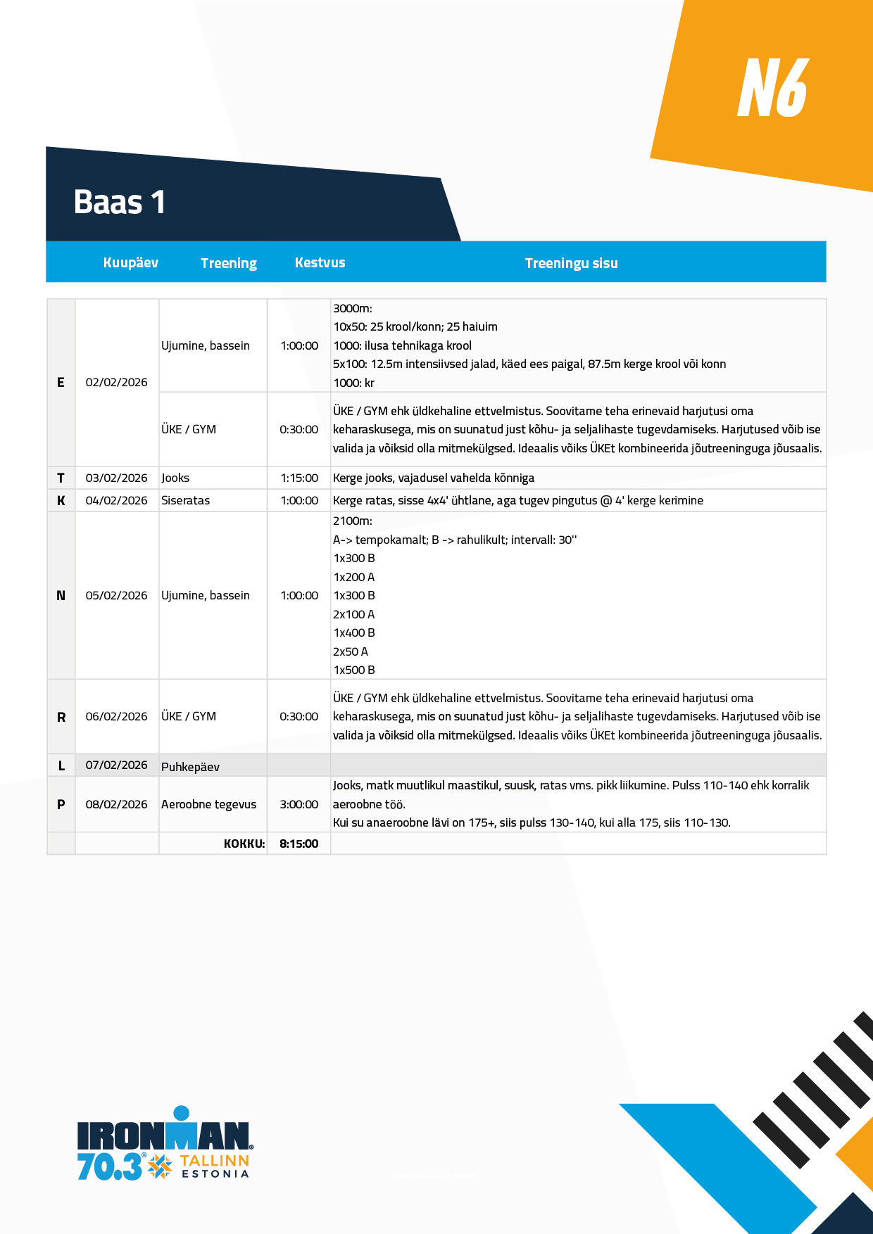 Ujumine ei ole pikem, kui tund. Ja võib ka lühem olla. Põhiosa on keskel ja keskendu selle ära tegemisele. Soojendus ja lõdvestus võivad vastavalt lühemad olla. Ujumistehnikad leiad enamuses siit: https://www.youtube.com/playlist?list=PLYcon0_LG98B3sqLTSWzy7DOV7aJkZ8R_